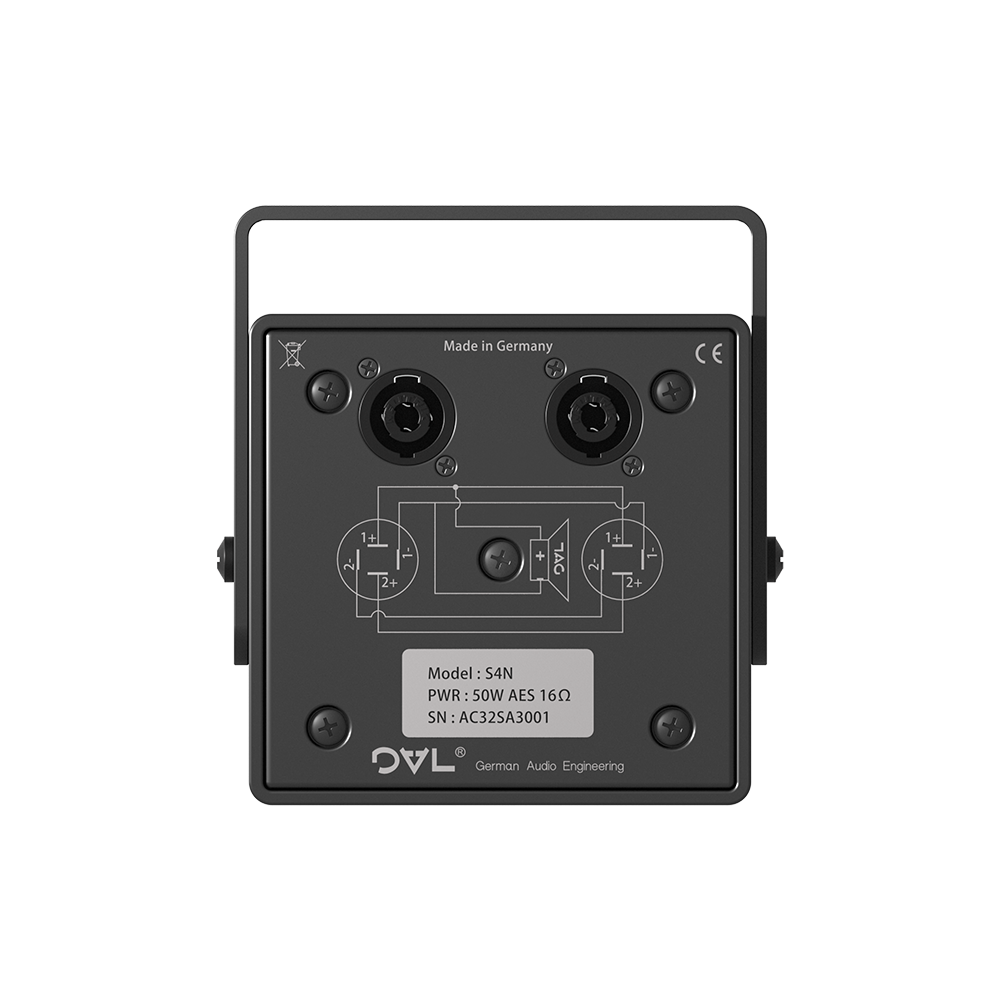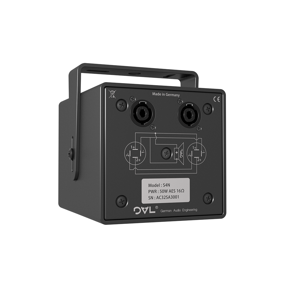 The S4N and i4N systems are primarily intended for distributed installations, but can also be used for near field monitoring with appropriate equalisation. In stand-alone or spaced array operation it can be used as an effect speaker or in museum displays. Due to its neutral reproduction characteristics and the high maximum SPL Level, it is equally suitable for speech and music transmission. For low end support, the DAL Sub-Low system, BR8N is suitable. The 4N systems are featuring an efficient 4" NDym cone transducer with 1"voice coil and weather protected cone. With an internal heat sink, coupling transducer and cabinet, the 4N system is providing an AES power handling of 50W for an audio bandwidth of 130Hz - 16KHz with a Peak power handling of 100W and a peak SPL of 110db/SPL/1m.